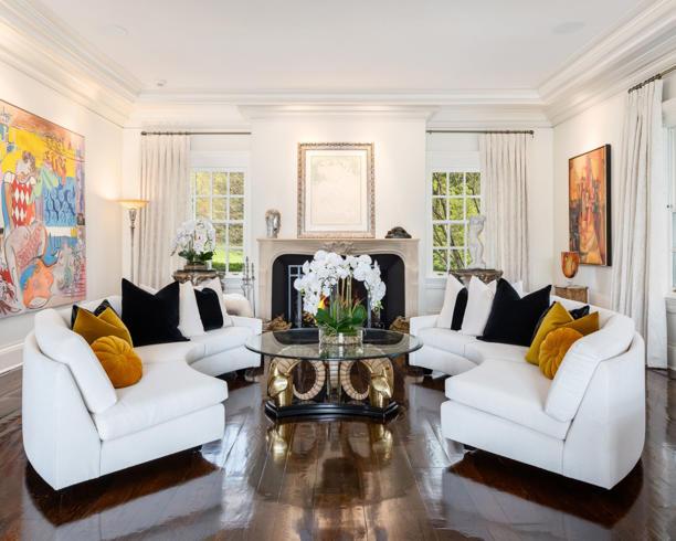 ერთ-ერთი ყველაზე შთამბეჭდავი ოთახია კაბინეტი/ბიბლიოთეკა, რომელიც მუხის ხის პანელებითაა მოპირკეთებული, სპირალური კიბითა და ჭერამდე თაროებით. პირველ მთავარ სართულზე ფრანგული კარები ფართო ტერასაზე გადის, რომლის ქვეშაც განთავსებულია დახურული გასართობი ცენტრი აუზით (რა თქმა უნდა, ჰადსონის მდინარეზე ხედით), სპორტული დარბაზი, სათამაშო ოთახები და სამზარეულო.