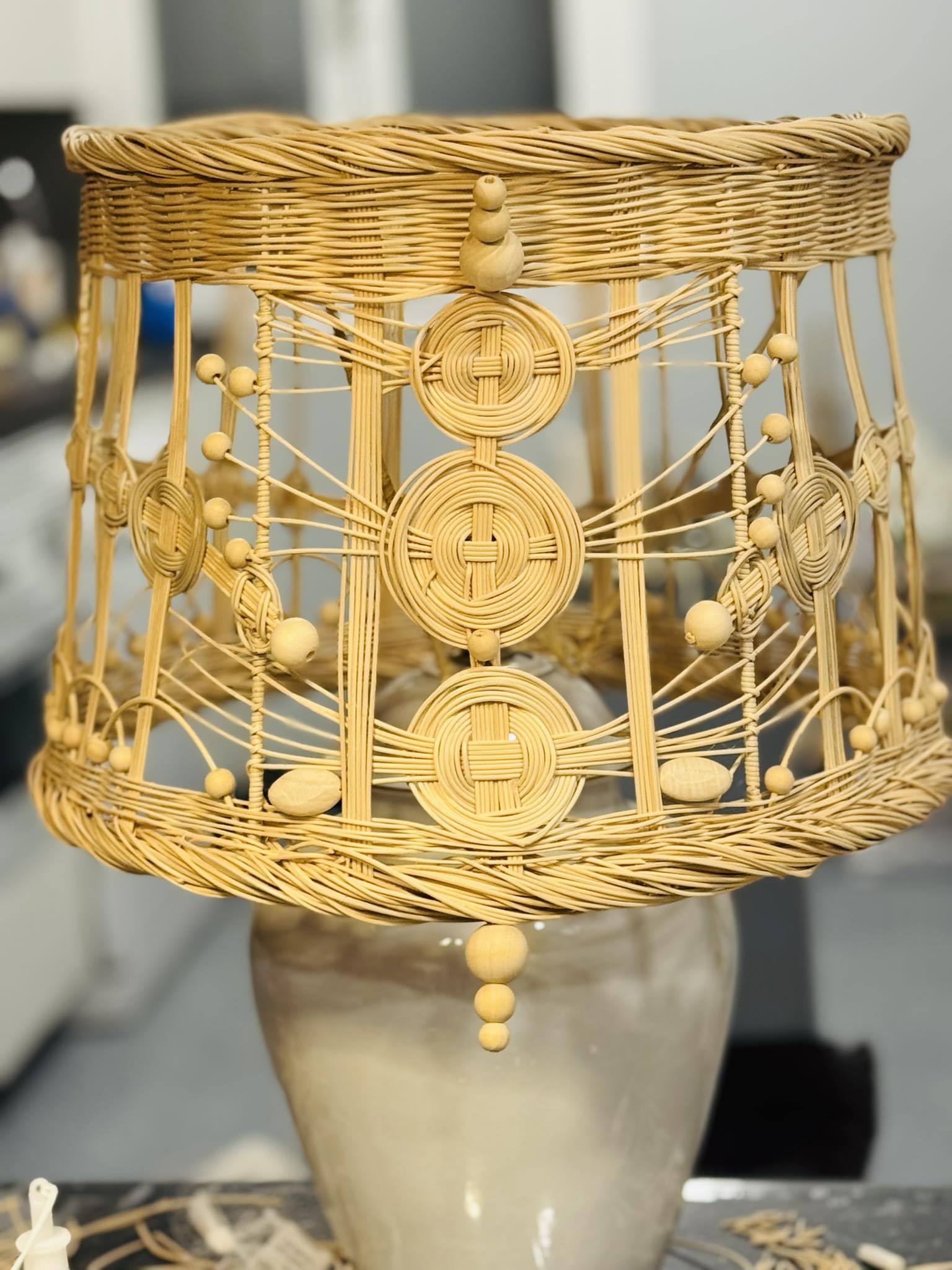 მერე სხვა მაღაზიაში რატანი აღმოვაჩინე. რატანი ხის მასალაა, წვრილი ტოტები, რითაც ხის ავეჯი იწნება. ეს მასალა ჯუნგლებში მოდის - ეგზოტიკურ ტყეებში და ძნელად მოიპოვება, თან არ არის დიდი რაოდენობით. ბავშვობიდან ჩემი ოცნება იყო, მქონოდა, რბილი ავეჯის საწარმო. მოკლედ, იმ ერთი ხვიით, რაც იმ მაღაზიაში შევიძინე, გავაკეთე სანათი, რკინის კარკასზე მოვწანი. პირველი ნამუშევარი ძალიან ლამაზი არ გამოსულა, მაგრამ პირველს მეორე მოჰყვა... მერე ინტერნეტში სხვადასხვა ვიდეო ვნახე, ამ მასალით როგორ მუშაობდნენ. საერთოდ, რასაც არ უნდა ვაკეთებდე, ჩემი პრინციპია, არავის ნამუშევარი გავიმეორო. ვცდილობ, ჩემი ფანტაზიები მეტად ჩავრთო და გავაერთიანო. ნამუშევრები ასე ნელ-ნელა დამიგროვდა. არის სანათები, სანათის თავები, კალათა და სხვადასხვა რამ. რთული იყო იმ ნივთების ესპანეთიდან აქ გამოგზავნა, მაგრამ როგორღაც მოვახერხე.