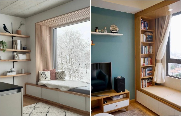 ფართო ფანჯრის რაფა მრავალ შესაძლებლობას გთავაზობთ. თქვენს ბინაში დივნის ადგილი არ არის და სკამის პოვნაც კი რთულია? გამოიყენეთ ფანჯრის რაფა. დადეთ მასზე შესაფერისი ლეიბი, დააფარეთ საბანი და რამდენიმე რბილი ბალიში. ასევე შეგიძლიათ დაამონტაჟოთ წიგნების თაროები ფანჯრის გარშემო ან ფანჯრის რაფების შიგნით. თუ ფანჯარა საკმარისად ღრმაა, ჩამოკიდეთ ფარდები, რათა იზოლირებული იყოთ ბინის დანარჩენი ნაწილისგან და მშვიდად დატკბეთ თქვენი ფიქრებით.