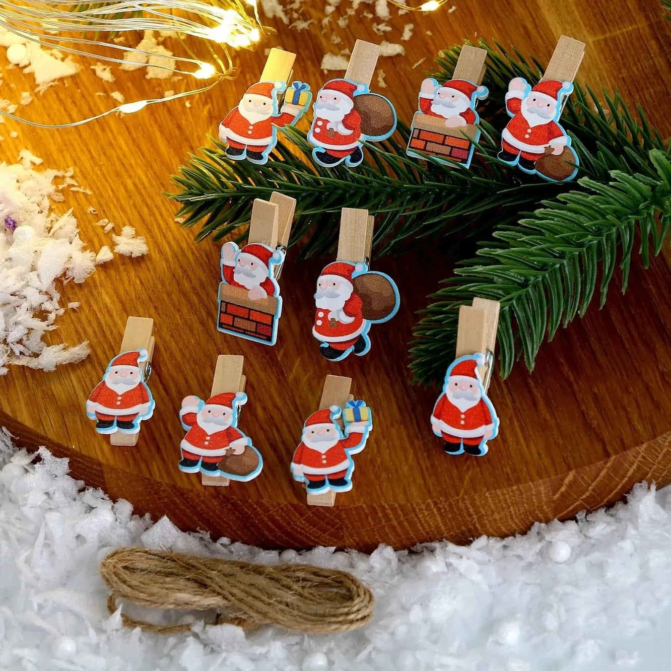 სპეციალური სამაგრები დაგეხმარებათ უნიკალური დეკორაციების შექმნაში. შეგიძლიათ გამოიყენოთ ისინი ინდივიდუალურად ფოტოების ნებისმიერი თანმიმდევრობით დასალაგებლად, ან შეგიძლიათ ისინი ერთად შეკრათ გირლანდად თოკის გამოყენებით.
