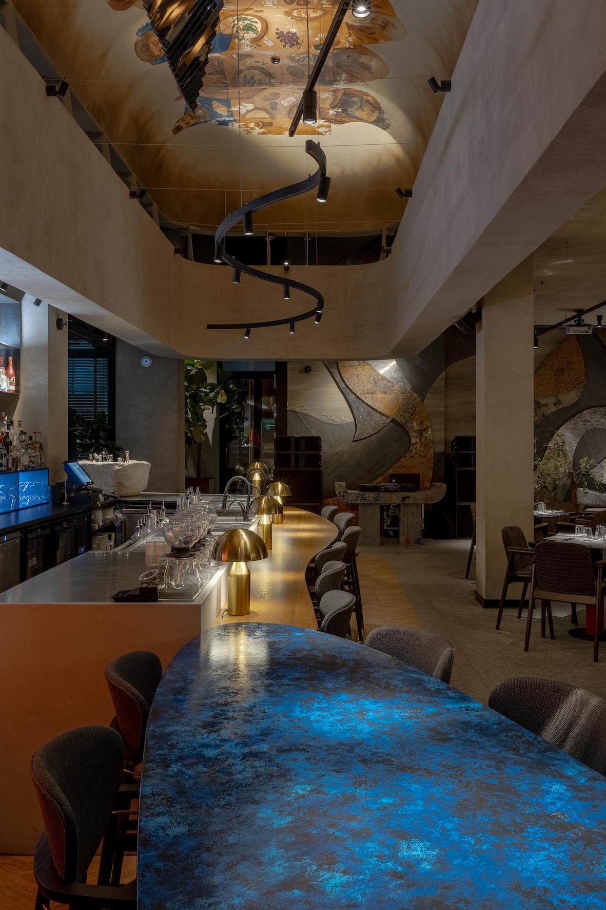 "ჭერი ხშირად ყველაზე მოკრძალებული ზედაპირია, მაგრამ მას შეუძლია სივრცის მნიშვნელოვანი დამამთავრებელი შტრიხი იყოს", - ამბობს ჰონგ-კონგელი დიზაინერი კლემენტ ჩენგი. ამ პროექტში, აბაზანაში ინდივიდუალური, ნათელი განათება კონტრასტს ქმნის ჭერის, იატაკისა და აბაზანის ნეიტრალურ ტონებთან.