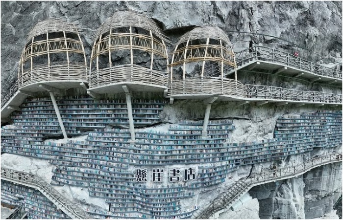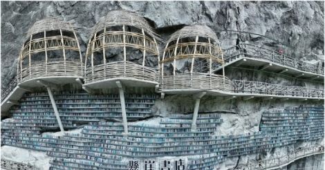 ჩინეთში, 300-მეტრიანი კლდის პირას, განსაცვიფრებელი წიგნების მაღაზია გაიხსნა, რომელიც თან ბიბლიოთეკის ფუნქციებს ითავსებს. ბევრს სჯეროდა, რომ პროექტი ხელოვნური ინტელექტის მიერ იყო შექმნილი, რადგან ფოტოები არარეალურად გამოიყურებოდა. აღმოჩნდა, რომ მაღაზია რეალურად არსებობს და პოპულარულია (პირველ რიგში, ბლოგერებსა და ტურისტებში, რომლებსაც უჩვეულო სტრუქტურის ფონზე ფოტოების გადაღება სურთ). სინამდვილეში, ეს წიგნის მაღაზია უბრალოდ საცალო სივრცეზე ან სელფებისთვის იდეალურ ფონზე მეტია; ის ასევე მაგალითია იმისა, თუ როგორ ერწყმის თანამედროვე დიზაინი ბუნებას, ქმნის უჩვეულო და თვალისმომჭრელ კომბინაციებს.