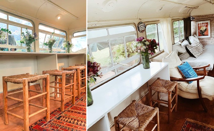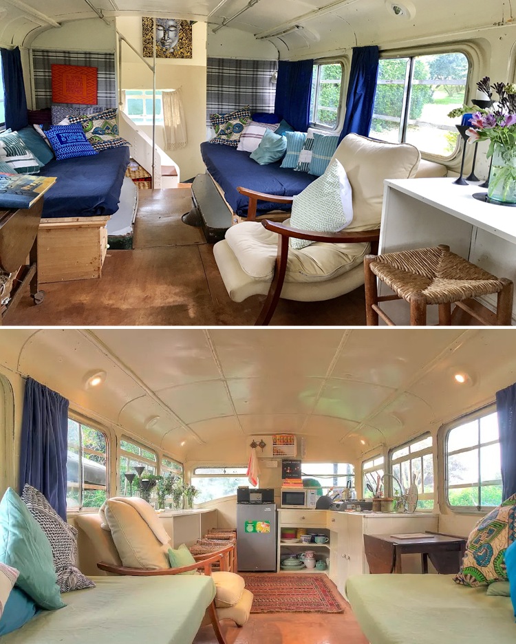 გადაკეთების დროს გადაწყდა, რომ ავტობუსის ზოგიერთი ორიგინალური დეტალი შენარჩუნებულიყო, რათა მისი წარსული გამოჩენილიყო და სახლს ინდივიდუალურობა შემატებოდა. ექსტერიერი (ახალი საღებავის გარდა), ბორბლები, მართვის პანელიანი მძღოლის კაბინა, ფანჯრები, აღდგენილი პანელები, კიბეები და ჩაშენებული განათება - ყველაფერი შენარჩუნდა. მიუხედავად იმისა, რომ თავდაპირველი აგარაკი სატრანსპორტო საშუალება იყო, ის საკმაოდ ფართო და მყუდროა. ორდონიანი განლაგება საშუალებას იძლეოდა პირველ სართულზე საერთო საცხოვრებელი ზონები, ხოლო მეორე სართულზე იზოლირებული საძინებლები განთავსებულიყო.