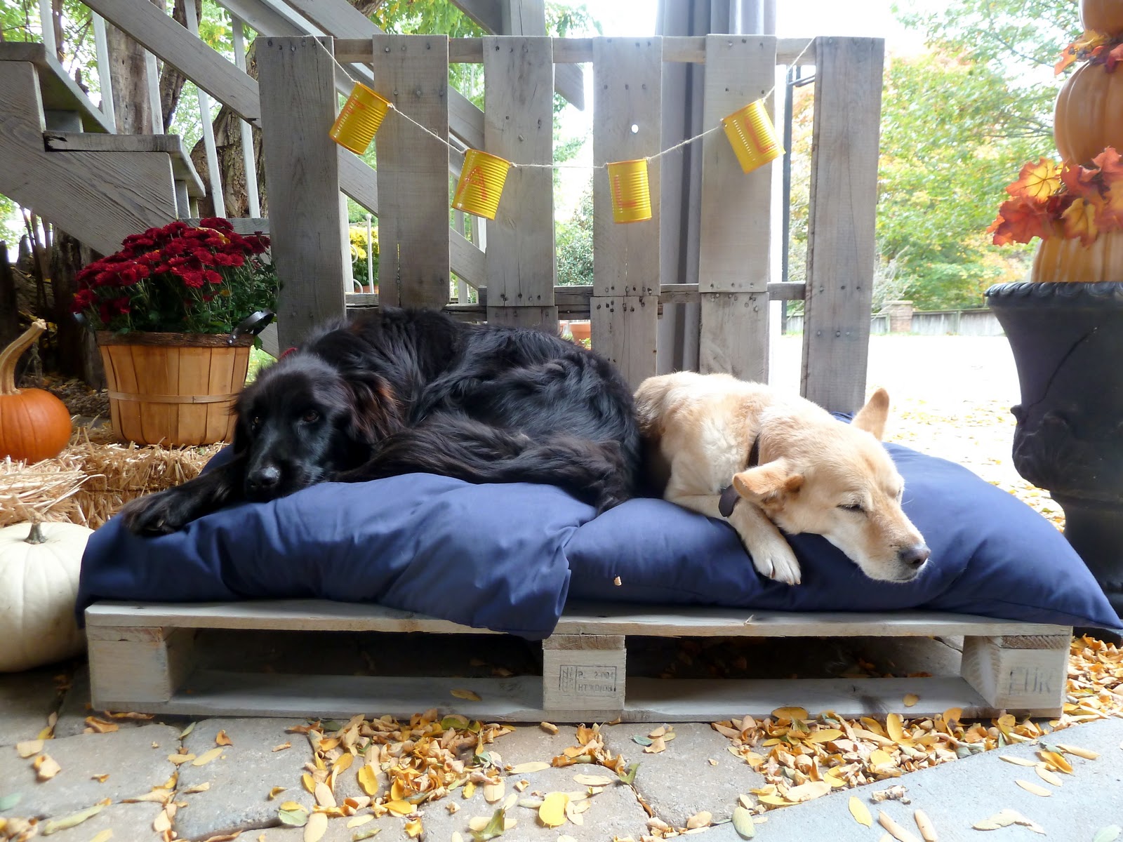 ჩვენს ოთხფეხა მეგობრებსაც უყვართ აგარაკზე დასვენება, რომლებსაც ასევე სურთ ჩრდილში ადგილის პოვნა ან მზეზე თბილად ყოფნა. ააწყვეთ მისთვის კომპაქტური, მაგრამ კომფორტული საწოლი პალეტებისგან. დიზაინი შეიძლება იყოს აბსოლუტურად ნებისმიერი: დაბალი, მაღალი, მრავალიარუსიანი, გვერდებით ან მათ გარეშე. არ დაგავიწყდეთ რბილი ლეიბის, საბნის ან ბალიშის დამატება. თუ პალეტები კაშკაშა ფერებში შეღებავთ ან დეკორატიული ელემენტებით გააფორმებთ, შეზლონგს ნებისმიერი აგარაკის ინტერიერის უნიკალური ელემენტი გახდება.