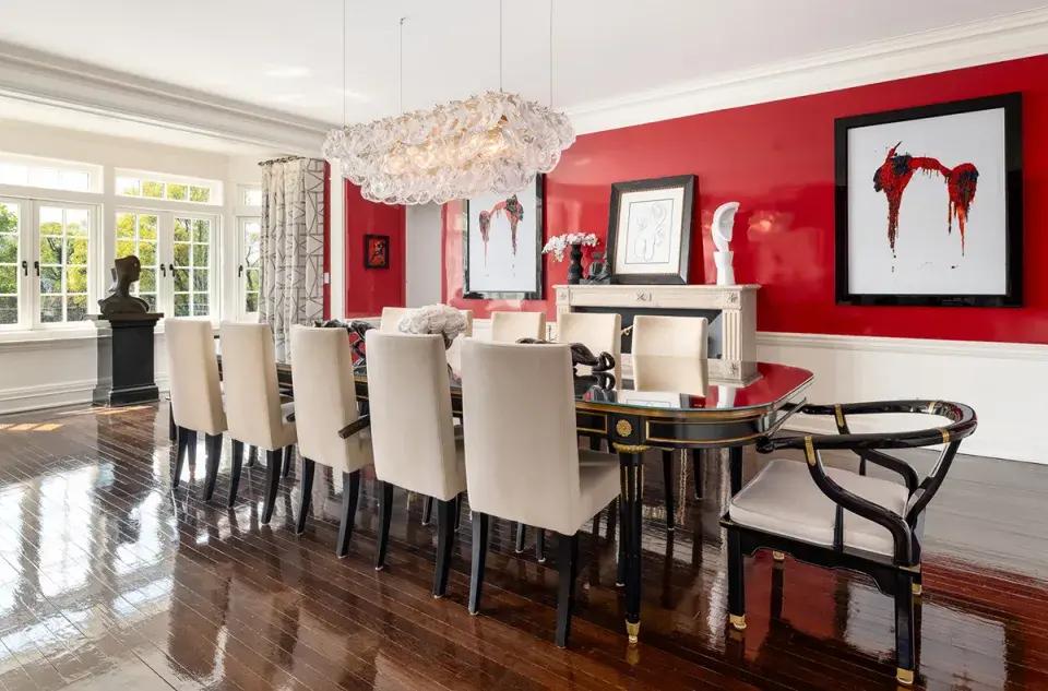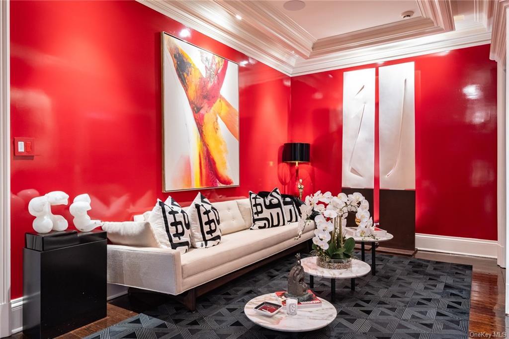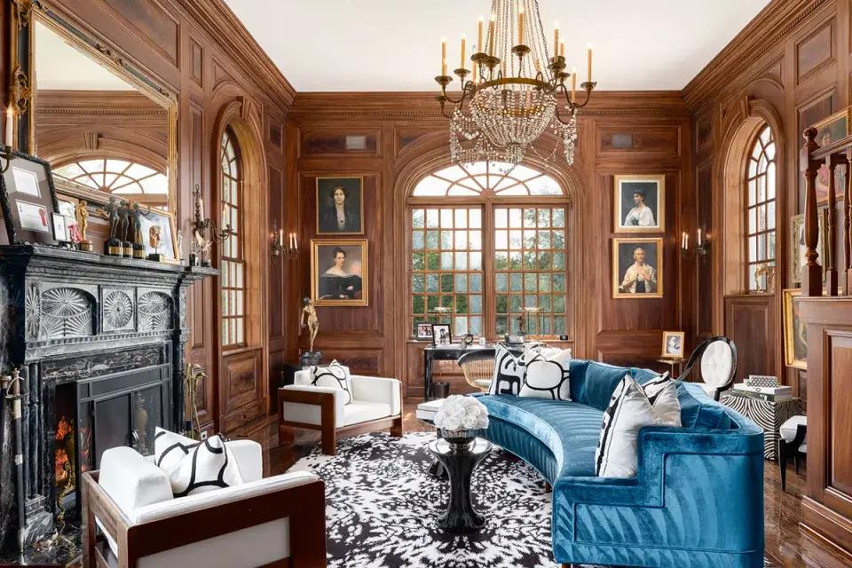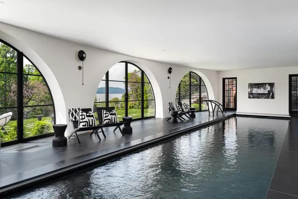 ერთ-ერთი ყველაზე შთამბეჭდავი ოთახია კაბინეტი/ბიბლიოთეკა, რომელიც მუხის ხის პანელებითაა მოპირკეთებული, სპირალური კიბითა და ჭერამდე თაროებით. პირველ მთავარ სართულზე ფრანგული კარები ფართო ტერასაზე გადის, რომლის ქვეშაც განთავსებულია დახურული გასართობი ცენტრი აუზით (რა თქმა უნდა, ჰადსონის მდინარეზე ხედით), სპორტული დარბაზი, სათამაშო ოთახები და სამზარეულო.