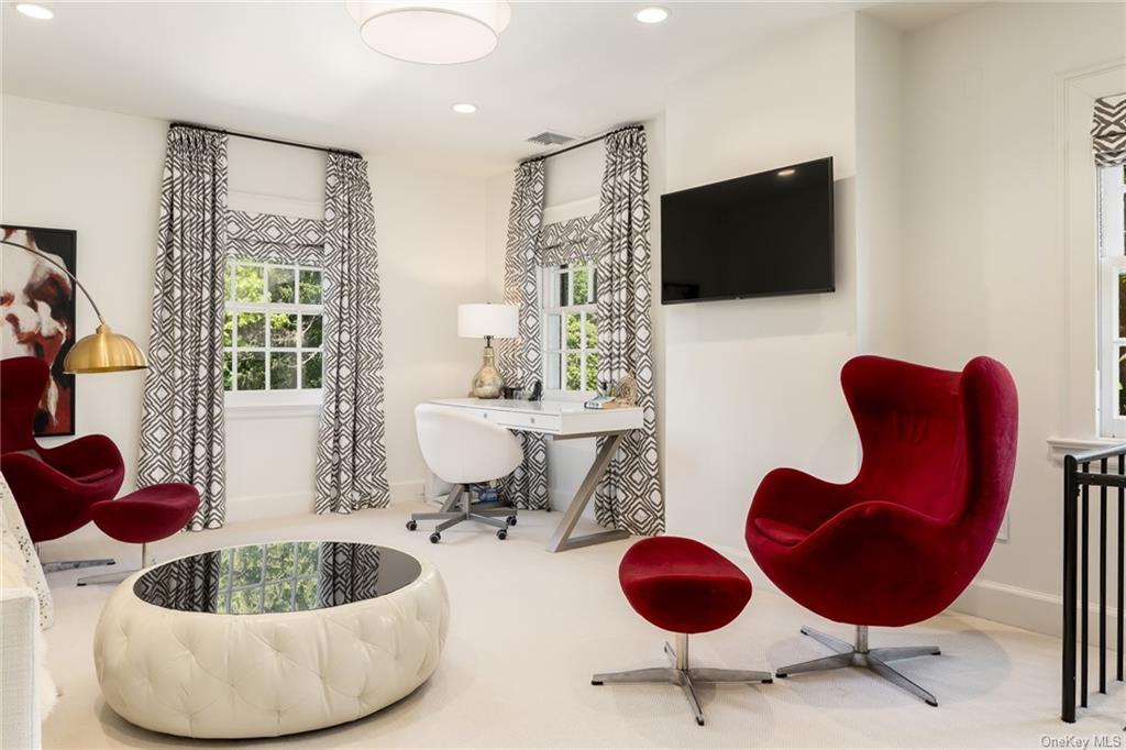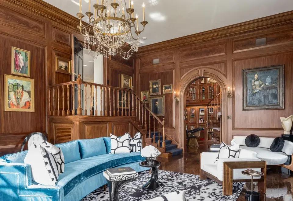 ერთ-ერთი ყველაზე შთამბეჭდავი ოთახია კაბინეტი/ბიბლიოთეკა, რომელიც მუხის ხის პანელებითაა მოპირკეთებული, სპირალური კიბითა და ჭერამდე თაროებით. პირველ სართულზე ფრანგული კარები ფართო ტერასაზე გადის, რომლის ქვეშაც განთავსებულია დახურული გასართობი ცენტრი აუზით (რა თქმა უნდა, ჰადსონის მდინარეზე ხედით), სპორტული დარბაზი, სათამაშო ოთახები და სამზარეულო.