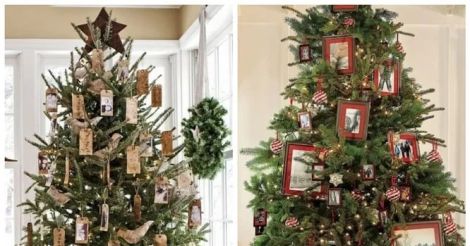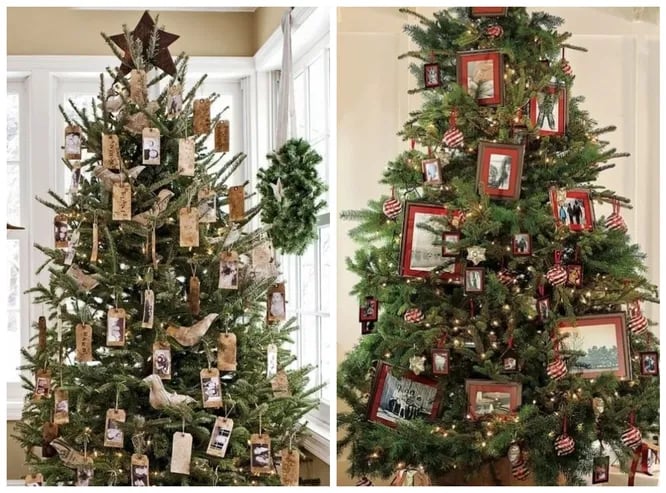 ლამაზად გამოიყურებაოჯახური ფოტოებით მორთული სადღესასწაულო ნაძვის ხე. ასეთი ნაძვის ხე, თაობების ცხოვრების ამსახველი მთელი ალბომით, შეიძლება მთელი ოჯახისა და სტუმრების ყურადღების ცენტრში მოექცეს.