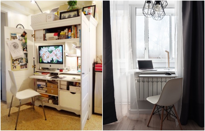 არსებობს ორი ვარიანტი, პირველი და ყველაზე საინტერესო არის სამუშაო მაგიდის კარადაში ჩასმა. როდესაც დაასრულებთ მუშაობას, უბრალოდ დახურეთ კარები და სულ ესაა.
