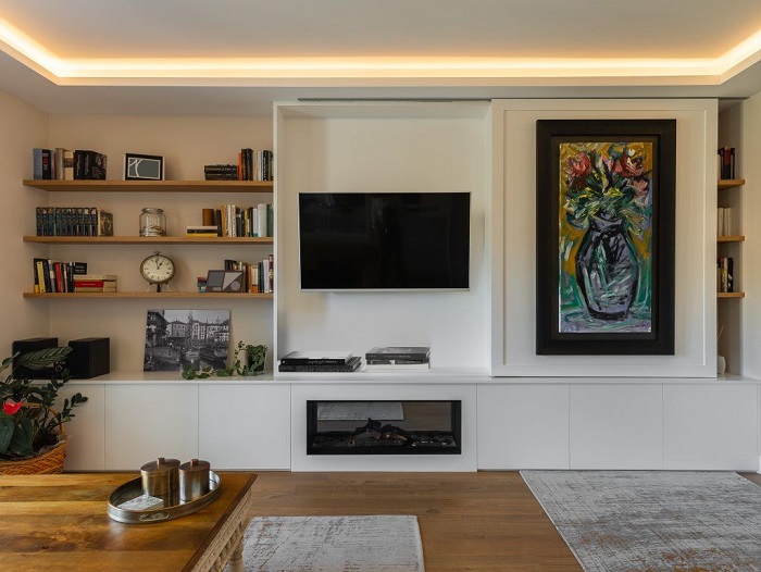 თითქოს ტელევიზორის დამალვა საჭირო არ არის, რადგან ის წლების განმავლობაში მისაღები ოთახის დეკორის აუცილებელი ნაწილი იყო. თუმცა, ბევრ ადამიანს არ მოსწონს ოთახში დიდი შავი ეკრანის გამოჩენა. თუ თქვენც ასე ფიქრობთ , შეეცადეთ ტელევიზორის ადგილის დამალვას, ამისთვის გასაწევი პანელი ან ჩვეულებრივი კარადა გამოგადგებათ - დაფიქრდით, რა იქნება საუკეთესო თქვენი მისაღები ოთახისთის. ასევე შეგიძლიათ, ტელევიზორი ფარდების უკან დამალოთ, თუ ის ფანჯრებს შორის არის ჩამოკიდებული.