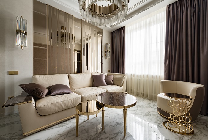 ახლა აქცენტი ყველაფერზე ერთდროულად კი არა, ერთ ან ორ დეტალზეა გაკეთებული. პოპულარული მასალებია სპილენძი, მინა, ხავერდი, ხე. დასრულებული ინტერიერი არ უნდა იყოს პომპეზური, არამედ დახვეწილი და ელეგანტური. გაითვალისწინეთ, რომ აქ მთავარია სიმკაცრე და სიმეტრია - ყველა ელემენტი ყურადღებით უნდა იქნას გათვალისწინებული.